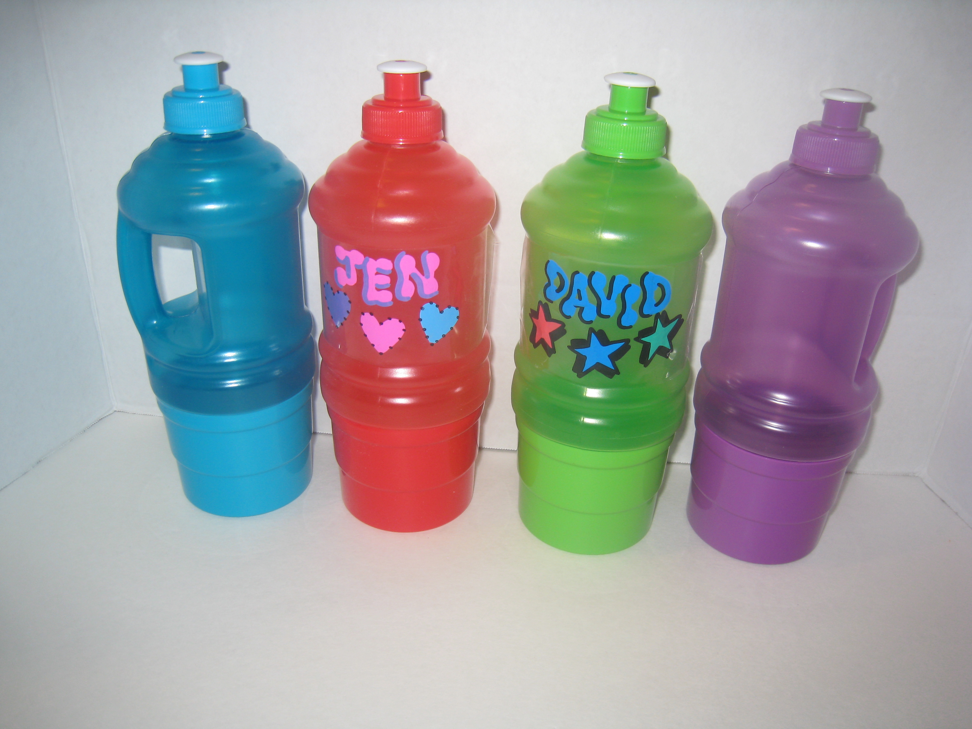 The sip and snack bottle is 9 1/2 inches tall. The bottle holds 18.8 ounces of your favorite drink, The bottom unscrews and holds a snack. They now come assorted in hot pink, green, purple, and blue. BPA FREE
